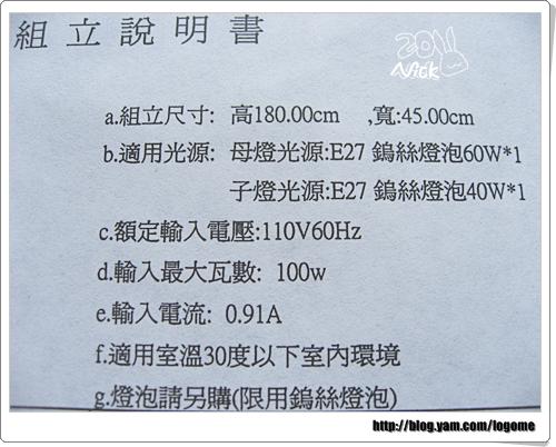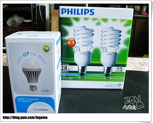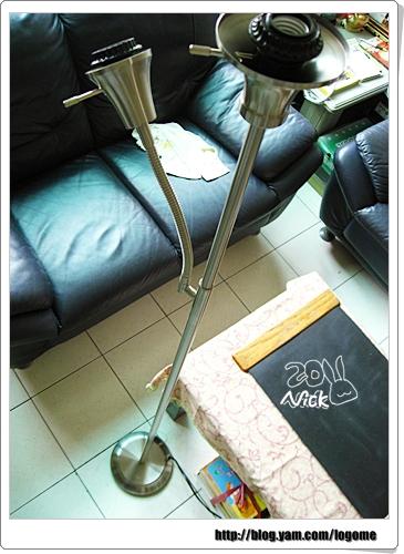 尼克家的客廳有些光線不足,一到晚上角落變得有些陰暗,對眼睛日漸退化的老媽子來說,光靠天花板的電燈閱讀起來就容易疲勞,為了身體健康著想這種錢千萬不能省,我想買盞立燈應該是不錯的選擇。於是便在B&Q網路上東挑西選,總算是找到這款樂曼金屬子母立燈,雅致的造型實用與值感兼具,深深吸引我的目光,由於客廳是白色牆面,很適合用向上投射燈照亮每個小角落,一旁的子燈也可以給老媽閱讀時使用,有一兼二顧的效果阿^^。不知道為啥說明書寫限用鎢絲燈泡,尼克用省電燈泡也OK的,不過由於省電燈泡比較長一點,會稍微凸出燈罩之外這是小缺點。大致的構造圖就長這樣,除了60W的向上母燈外,一旁用可用金屬軟管自由調整方向的40W子燈,也是尼克看上這款燈的主因之一。剛收到包裹還覺得說包裝怎麼這麼小,原來是將燈分成數小節,再以螺旋的方式組裝。鐵管前緣用橡膠圈保護起來避免刮傷,相當細心。組好之後比我還要高呢,金屬色澤在陽光下更顯出現代感,放在客廳彷彿就是個亮點,不但照亮全家人的生活,也提生不少生活值感。旋轉式的金屬桿是開關所在,要順時針轉動才會理你唷,逆時針轉會轉到掉出來。噗,我承認我有轉錯邊。齒輪般的塑膠環是燈罩的卡榫,先把它卸下來吧。沒想到這兩個柔光燈罩就像碗公一樣大。柔光罩裝上後,把齒輪狀的燈罩卡榫鎖回,時尚子母燈就大功告成囉。燈具搞定了,接下來就來裝燈泡囉。尼克選擇了兩種不同的燈泡來作測試,分別為E27接頭的飛利浦省電燈泡和國產的LED燈泡,價錢則是LED燈貴了一倍。LEDplux這款7W燈泡相當於鎢絲燈泡40W的亮度,壽命更長耗電量更少,擁有不閃爍延遲的穩定光源,的確是比省電燈泡優秀不少。地球只有一個,一定要為環保盡一份心力。假如有更多的預算,真想把家裡的燈泡全換成LED的。飛利浦28W的T3螺旋省電燈泡亮度則相當於125W鎢絲燈泡,能節省百分之八十的電費,非常可觀。比較兩者外型,LED燈泡要來得小得多,雖然亮度也跟28W的燈泡差上一截,正好用來當作子燈的照明,閱讀時太強的亮度也不舒服。偷偷抱進我旁間試試看,更純粹的白色牆面更有利投射燈作反射,均勻柔和的光線很輕易地就把整個房間照亮。有了這次的經驗,我想應該會再物色一盞漂亮的向上投射式立燈來點亮我的房間吧。總覺得家裏角落昏暗的朋友,可以考慮看看唷。
