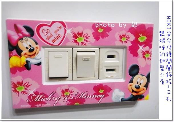 只要將所附的雙面貼條貼上,再將可愛的MIKI及POOH安全防護開關飾板蓋上就可以囉!