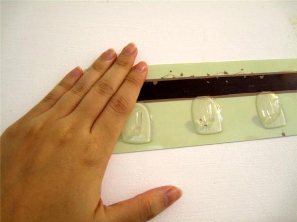 日前在B&Q網路商店上發現了這款無敵神奇的Home Zone重複貼掛勾。你一定想說,這薄薄一片是啥東西吧?說它是掛勾,但如此輕薄是要如何跟壁面結合呢?又,這樣小小一片,是如何能耐重?我也是跟大家一樣的os,抱著嘗試看看的心態,買了個來試試看。收到Home Zone重複貼掛勾,果真是沒什麼份量的一小片東西,上面有著看了非常不可靠的5個掛勾。但包裝上的宣傳文字卻是挺有力的,居然標榜是個貼的掛勾,移動位置不會殘膠,也不用像傳統的掛鉤,另外黏上新的雙面泡棉膠,最神奇的,居然還可以重複使用,一般的雙面膠掛勾能使用個幾個月不掉下來就偷笑了!掉了後還不能重複使用,這款Home Zone掛勾居然標榜可以重複貼??實在很讓人存疑。無論如何,還是要打開來試試,側面一看,果然是薄薄一片,厚度應該0.5公分不到。質感有點像塑膠板,上面還印了花紋,花紋其實有不少選擇,我自以是挑了這款咖啡色系,好跟我之前B&Q購買的白色IRIS收納櫃搭配。Home Zone重複貼掛勾的背面就是如同雙面膠一樣的貼紙。按照說明,只要把貼紙撕開就可以貼在家中的牆面,不管事磁磚、木質物品、塑膠、玻璃或是金屬等無毛細現象的材質都可以使用。貼上時,也不用擔心要準確的一次對齊,就算貼歪了,也可以撕下來重貼。貼上後用手掌緊密壓合,讓Home Zone重複貼掛勾靜置6~8小時,之後就可以正常使用。掛勾雖然看起來尺寸不大,但掛我的包包們也是綽綽有餘。這款Home Zone重複貼短五勾最多可以乘載到2.5公斤,我實際掛了這些包包2個星期,到現在完全沒有脫落的跡象,實在是件神奇的產品。