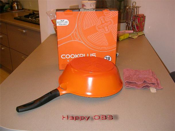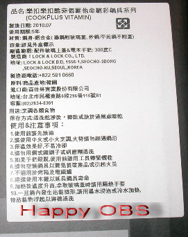 其實,很早很早以前就一直想要買個不沾鍋,之前用的鍋寶不沾鍋會把蛋流到鍋邊(因為中間是弧狀的),直到有天看見上面有個小傷口,嘿嘿!我終於找到藉口淘汰它了!OH!YA!但是,自從淘汰它時,就一直不知要找那個牌子的,直到有天在網路閒晃時看到!樂扣的深的平底炒鍋?心中很好奇,樂扣不是出保鮮密封罐的嗎?怎麼也會出鍋類?!而且還有很多種喔!有炒鍋(我買的)、平底鍋和長柄鍋等等喔!就在好奇心的趨使下,在網路上比較了一下價格!HOLA有賣吔!而且還特價優惠(原價1790特價1399)讚啦!於是就下了OBS一生中第一筆的HOLA網路訂單!也是OBS人生中第一次在網路上購買鍋子!等的超久的,嗯等了6天吔!好不容易就在今天回家時看到送貨了!YES!雖然吃飽了,但為了想要立即享受,就趕緊拆封!翻遍了整個箱子,就只有韓文的說明書!只好以過去的經驗,先用水煮一下,倒掉用廚房紙巾擦一下,就開始用了!因為吃飽了,所以煎個火腿加蛋吧!來看一下包裝外觀↓[外觀直徑為28CM)外盒貼有中文說明及包裝鍋底有COOLPLUS和適用爐具的貼心圖示(嗯,是炊事達人的意思嗎!歹勢啦!^^)好的鍋具也是廚房的裝飾喔!↓要開始使用囉!OBS的無油蛋(完全沒放油喔!)使用後的維他命!OBS碎碎唸!第一次沒有用油來煎蛋,完全不沾鍋(我給9.9分)使用說明不是很清楚,說明書都是韓文啦!(5分)在第一次使用的說明沒有寫,後來在OBS吃完後,爬了原廠官網,有寫吔!1. 第一次使用時請徹底清洗,用少量油加熱鍋身讓鍋子吸收油脂,可延長鍋子壽命,使用後用溫水沖洗擦乾後再使用。(完了,OBS只有用熱水熱一下吔!明天的肚子會不會怎麼樣呢!= =")整體使用感覺還不錯,也好清洗,下次再來試試真正炒鍋的功能吧!如果油都一點點,那麼OBS的減肥大計,應該是指日可待吧!咱們下次見囉!購買網址:http://www.hola.com.tw/product/detail/id/223967