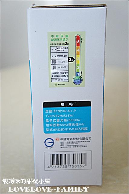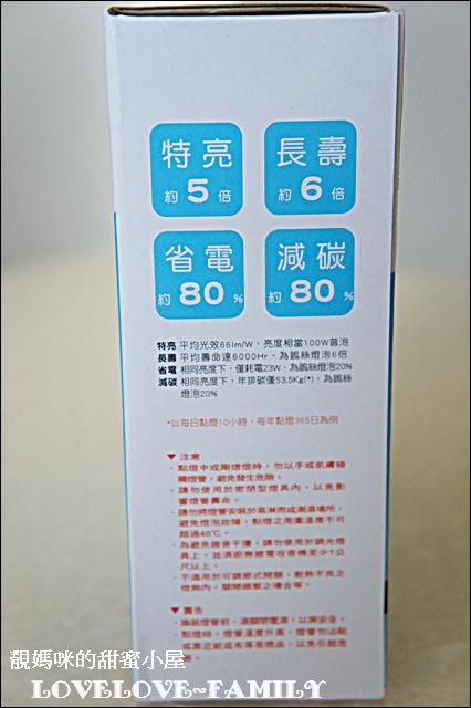 重點是靚媽咪看到外盒的介紹: 23W,亮度相當100W普泡,省電80%,真的是省很大呀~~