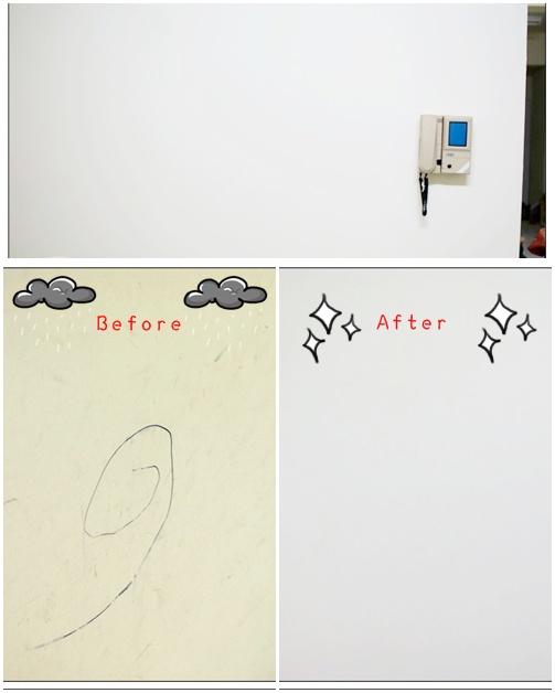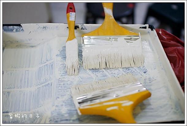 同上一篇...最近還在搬家忙碌中~因為只是住在原本的公寓只是重新整理洗牌,免不了也要來重新審視一下,看有哪些地方是需要再整頓的...沒錯啦...就是牆面...(亮燈泡)由於我們住在這已經六年了,惡魔姪女迷你餅餅也變成小餅餅了XD於是有小孩的家總是免不了這樣...和這樣...XDD新家新氣象,是該上特力屋挑選新油漆啦...其實是續了新約但房東不幫我漆T_T 只好自立自強...(挽袖子)光是挑選油漆就讓我煩惱很久,因為家裡範圍很大,又沒什麼時間全部漆過,審視過後決定只漆客廳等比較有明顯胎哥的牆面,因為會有新舊牆面的差別,所以一開始選漆的顏色就要很小心,不能差異很大...但油漆...也太多顏色了吧...光是白色就有藍鈴白貝殼白百合白特白玫瑰白青蘋白蘭花白大麥白蠶絲白...族繁不及備載...也因為是花自己的錢油漆...所以我決定省錢只漆一遍...不能買什麼補土還什麼底漆的(掂口袋)因為有這麼多的因為,乾脆直接打特力屋的客服問問看他們的專業意見,在他們親切的解說後...乳膠漆...就決定是你啦!(丟神奇寶貝球)以我這種懶散又愛蝦忙的個性,可能沒辦法也沒時間一次漆好所有牆面,所以我選的是1L的小罐裝*5,這樣才不會一大罐打開非得一次漆完不可...選得利全效合一乳膠漆是因為...它還蠻有名的(?)還有 綠建材認證 低VOC環保配方,低化學味 日本JIS抗菌防霉檢定 平滑細緻抗污 無添加甲醛鉛汞 質感細緻色澤持久,覆蓋細微裂紋 耐擦洗10000次以上因為暑假在家裡的時間較多,如果上了刺鼻的廉價油漆,對自己身體也不好,而得利1L$299又比立邦平價些,當然是我心目中的首選囉~(彈手指)開箱啦~(樂)這顏色就如客服人員說的,略略帶點黃色調的白,就是我想要的顏色~而且湊近一聞,只有一股類似優酪乳的味道,一點都不刺鼻難受~保護措施先做好...才不會把踢腳板滴上一堆鳥屎樣...XDB&Q網站上有小tips: 一公升約可漆四坪,並加20%的清水跟乳膠漆混合。話說那個滾筒實在是滾得不是很均勻...技術太差啦!(淚奔)努力攪拌中...等到混得差不多時就準備開工啦~我好久沒漆油漆,還真有點緊張...XD我負責較低的牆面,高處當然就要交給家裡的長工啦~刷刷刷...刷刷刷...其實兩個人漆很快就漆好一面了,比我想像中的還快~最上面也不能遺漏...這個人做事比我仔細多了...(蹲旁邊看電視納涼)一整片牆面漆完大概用了一半多一點~比預計中的量還省。大約半小時就差不多啦~其實專業油漆工應該是咻咻咻一下就好啦~沒關係 我們是慢工出細活XD好白好白~(轉圈圈)看起來好新好亮呀~心情都快活了XD只漆一遍其實就已經把所有髒汙都蓋掉了,而且也沒有不均勻的地方,所以應該是漆一遍就好啦~(偷懶)感動的一刻~好白呀~本來我以為一罐只能漆一面牆一遍,不過還有快一半的量,於是繼續來漆另外一面比較短的牆面。噹啷!!有了經驗所以這面一瞬間就漆好了XD又是一整面的乾淨潔白~看了就覺得好開森~老單眼爺爺最近有點力不從心,也還沒買新閃燈,所以拍室內比較吃力了,拍不出實景那種白帥帥的模樣XD左邊是另外一面還沒上新漆的牆面,右邊是穿上新衣服的牆面~不禁要說我顏色選得真好(?) 雖然有新舊的色差,但兩種顏色不至於有不同基調~過幾天再來把剩下的漆一漆~好期待呀~再來回顧一下...我們家真的要變新家了XD其實我有點漆上癮,覺得看著嶄新的牆面真是有大爽度...開始有點想要連房間都漆了XDD全效環保的乳膠漆真的還不賴,也能用水洗,想省錢的話漆一遍也很美~I can't wait to see my brand new home! B&Q乳膠漆類: http://www.i-house.com.tw/product/menu/id/515/page/1