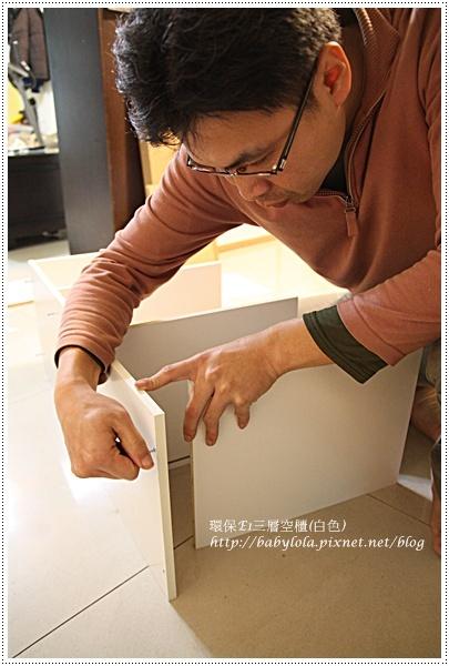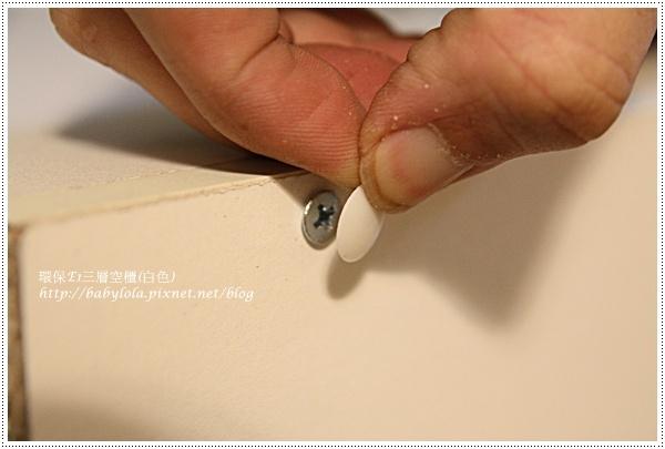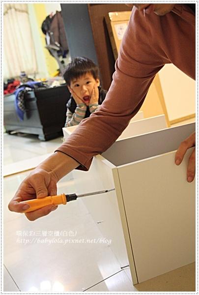 很多家庭都喜愛用三層櫃來收納物品,我們家也不例外,光一個臥房就擺了二~三個,不但可以當床頭櫃使用(二格),還能放在室內的邊邊角角當收納櫃使用。這回買了環保E1三層空櫃(白色),尺寸為40*29*80.3cm,使用的層板是E1低甲醛塑合板,並搭配貼美耐敏紙表面,耐磨性更佳。以前在特力屋實體店曾經看過三層櫃改造的活動,三層櫃除了可以垂直放立之外,只要再善用一些工具及巧思重新拼裝組合,三層櫃就不止是三層櫃,整個收納的功用也能發揮極大的作用。三層櫃的組合一點都不難,所配用的工具也只有幾顆螺絲就能搞定。開放式的收納櫃雖然容易拿取物品,但缺點卻是容易藏積灰塵,若是不喜歡開放式的櫃子,最好的方法還是加裝門板使用,或是搭配置物櫃,一來整齊又不容易顯亂。放入層板後很快的就能組裝完成。沒想到廠商竟然還貼心到附上塑膠螺絲頭蓋,這玩兒可讓三層櫃整體質感提升n倍,螺絲不外露更顯得高雅的氣質。不需費九牛二虎之力就能套壓,連二隻小鬼都情不自盡的來幫忙,ㄎㄎ…因為太容易使得沒成就感嗎?!?!ㄎㄎ…怎麼我才一轉身這二隻小鬼未免也太可愛了吧!!!!!!突然跑到沙發上靜悄悄的在鬼畫,太美妙了他們~組裝好的三層櫃就放在客廳與餐廳當隔間使用,剛好與先前的白色櫃子陳現一系列的組合,大型的櫃子是擺放carter他們常看的書籍,而三層櫃剛好可以擺放輕鬆的物品,撿來一堆的松果終於有位置可以擺放了,開心ing最上層還能陳列carter近期的新歡。這樣的擺設雖然顯得簡單了點,但我還是好喜歡這樣的白色系列組合,不僅實用,也很容易搭配室內的設計,分格分層好整理,再搭配需求使用,三層櫃也能很優美高雅。哪裡買→http://www.i-house.com.tw/product/detail/id/445760推薦代號:chiu20051016 (感恩)