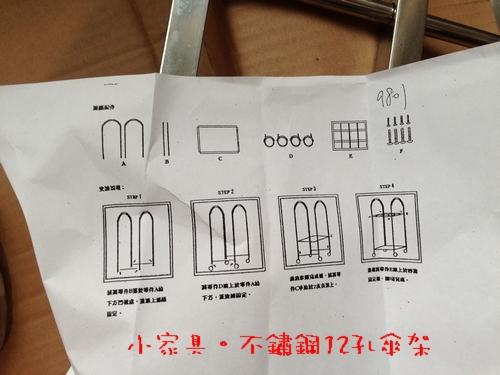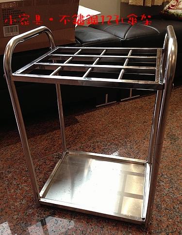 大家的傘都是怎麼收納的ㄋ?以前住公寓大樓時就算是濕答答的傘,也只能先甩一甩後帶進家門再放入陽台角落,但家裡一進門不是陽台,難免都會滴到水。現在住家雖然院子門口有雨遮,乾脆傘也都放室外去,但之前都是隨便門口放個桶子當傘桶用.不過放在塑膠桶子裡難免桶子會脆化且風雨大了桶內會積好大一桶水後來有看到隔壁鄰居好認真在牆上鑽了孔架了雨傘掛架不過真是很大工程又得在鑽牆面我只好放棄這方式一直有想要購入雨傘架,不過一般好像都是看到傘桶不是可能太小插不了幾支就是不是不銹鋼的怕會生鏽好幾次有看到便利店或是小商家門外有放不銹鋼的傘架雖然不是華麗美觀型但是實用性倒是很不賴且要是人多要放傘我感覺其實是很不錯的所以這個月在特力屋網路購物時我挑了個【不鏽鋼12孔傘架】想說採用不鏽鋼材質製成,不易生鏽至少免去易損壞的顧慮且有滴水盤設計不會弄得滿地水又通風(好主婦還是得顧慮到CP值啊︿︿)不囉嗦直接就來個開箱文不是很重也不是很大箱,喔原來是要自己組裝啊好在我就是很"鹹會"啊有圖有幫助東西不多樣,看起來就很好組裝螺絲對孔轉入即可且實在要幫這產品說句好話我以為最上面那12孔架有分正反面結果沒有,因為兩面都好光滑一點都不刮手(讚!)本來是組裝這樣其實感覺就可用了因為是不銹鋼又有滴水盤設計其實滿穩固的不過這款還有附滾輪,不管放在外門邊或是玄關都可輕鬆移動特力屋結帳時,別忘了可以報我的推薦帳號^^ :hellenyhttp://www.i-house.com.tw/product/detail/id/252048收納小家具^^不鏽鋼12孔傘架