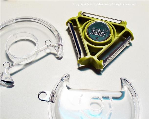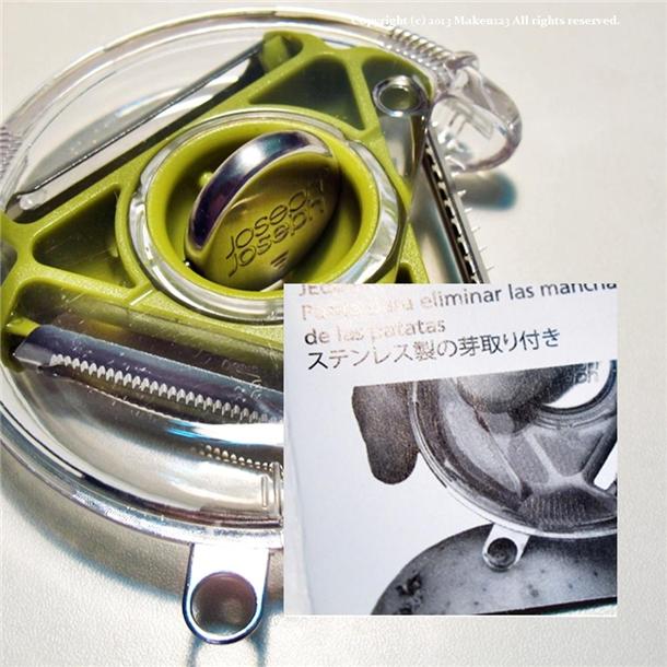 刨刀旁邊不銹鋼圓圈圈,是用來挖掉馬鈴薯的芽眼用,也是個巧妙又美觀的設計!