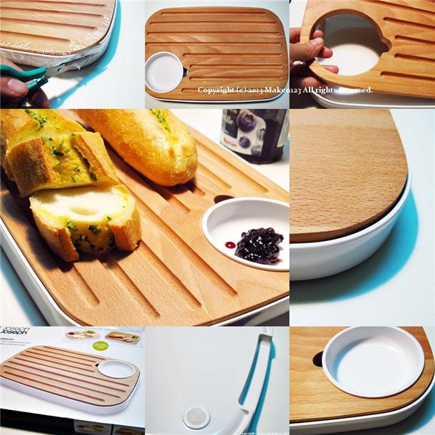再來用好品味木質兩用砧板切些麵包,也是非常好用,砧板底部有防滑墊,很好切,