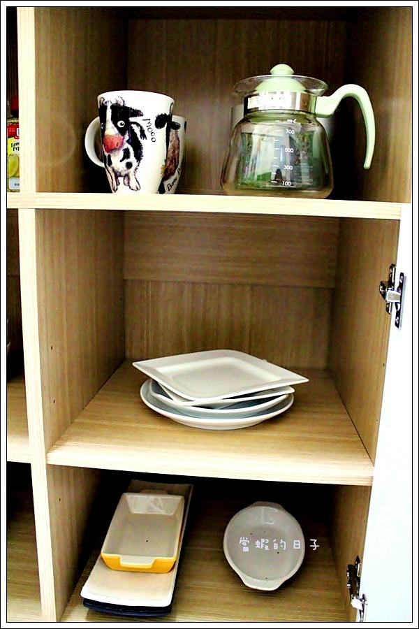 繼上篇努力敗家好過年那篇,俺接著又買了一個好過年的廚櫃這樣(藉口)其實是家裡靠廚房的走廊還空了一個空間,因為沒有什麼好藏拙的櫃子,所以整個就是亂堆(不好意思拍出來)要過年了要大掃除了就一看不順眼二不知整理了要堆哪去...於是跟ES上特力屋討論了一陣,就決定敗下去了...麥提鏡面三門廚櫃$3299 心雖有點痛但想說整理後可以好看點,值得囉~也是兩天就送到了~喔耶~一來整個足足約九公斤重,送貨的臉都歪了...ES一打開看到一大堆板子他臉也歪了...XD大大小小的夾板等就有十幾片,這可能是我們組過的傢俱裡最工程浩大的這樣...連配件都是大大小小好多包...這下可有得玩了XD說明書一拿出來...B4滿滿兩面XDD 一方面很感激廠商這麼用心寫得很詳細,一方面是拍拍ES的肩...加油,好嗎?這個鏡面門板還有保護膜包著,很不賴捏~組好後一定蠻有質感的~這個居然還有打印它的全名以避免跟其他板子混淆這樣...我之前買的櫃子都只是打abcd,這太威了...應該是賣得不錯 哈默默努力的ES...要我拍幾張他認真帥氣的模樣XD甘心附上小木質貼紙,讓醜醜的螺絲藏起來...貼紙上的木紋跟櫃子的紋路要記得對齊~租屋族為了以後如果要搬家方便,這類傢俱我們都不上膠水把木樁固定,用榔頭敲一敲固定即可。還記得它嗎~居家必備的工具組,好用~ http://blog.xuite.net/deepmiou/blog/62653540 很快的就有個雛形啦~這要是我應該會搞很久很久...淡淡的橡木色我個人很愛...總覺得家裡如果都是這種顏色的傢俱一定很美呀~(幻想中)立起來大概是91.5cm,經過我深思熟慮的精算下,買這樣高度的櫃子剛好不會擋到插座,到時櫃台上要放什麼熱水瓶就很剛好~背板插上後發現後面還有貼了一張注意事項...台灣濕氣重,有空時還是要除濕一下,以免太潮濕發生杯具...櫃子組的差不多了,再來就是裝門囉~其實這個部份的說明書我看的霧煞煞...還好冰雪聰明的ES瞄了一眼就知道該怎麼裝...佩服佩服...(抱拳)這個櫃子最累的就是一直鎖螺絲...鎖到ES手都發紅了...看來過不久我應該會來添購一個電動起子...噗門把跟所屬的螺絲少見地另外一份一份封袋,這也太仔細了~很怕我們鎖錯就是了XD我鎖...我鎖...我拼命鎖...終於...終於組好了...從十一點組到快一點...看到成品整個有感動到...迫不及待地把我們常喝的老人茶具擺進來~每次要喝還要特地從廚房開櫃子拿,放在客廳又沒空間,放在這裡是最剛好的~旁邊的格子則是擺製調味香料,平時比較忙不常用,放在廚房總覺得瓶瓶罐罐有點礙事,統一擺進開放櫃裡既通風又不佔廚房空間。有門的櫃子當然就適合放些盤盤碗碗的,以前碗盤都放在瓦斯爐下面的廚櫃裡,有人在煮飯時還要擠過去找盤子實在很不方便,現在這樣分開疊放除了好找外也很好拿取,大掃除時再來幫家裡所有的碗盤搬新家~一打開就一目瞭然,空格夠大,想放幾十個碗盤應該也沒問題的啦~最上面的櫃台上簡單就好,放個熱水瓶就很實用又清爽~家裡小碗類的比較少,如果放那麼大一格也很瞎,這時把可活動的隔板改個高度...(隔板不小心放反了...字跑出來啦XD)平常少用的鍋具立刻收納OK!這樣收一收,整個廚房就空了很多,再也不會東疊一塊西塞一堆的,重點是又能兼顧漂亮簡約的外型,叫我怎能不愛它...XD快過年啦~你們開始整理了沒~該動手(買XD)囉~麥提鏡面三門廚櫃: http://www.i-house.com.tw/product/detail/id/233691