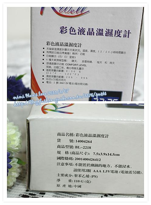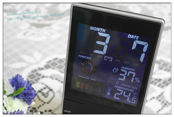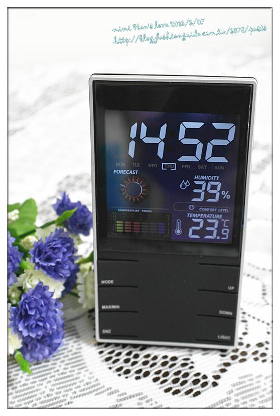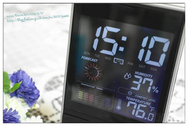 自從N年前開始,房間裡頭就只剩下手機可以看時間了~本來是想直接買個時鐘來掛,但是因為不希望繼續在家裡的牆上打洞而且也習慣直接依靠手機,所以就拖到現在囉~妳也太會拖了吧= ="在買延長線的同時,突然喵到這款感覺畫面還蠻不錯的【彩色液晶溫溼度計】在特價先吸引本宮的不是溫溼度,而是那大大的顯示時間><"台灣溼度高,日夜溫差也很大,其實手邊有個能顯示目前的溫度、溼度的東西還蠻有用的~提醒需不需要開除濕機、該不該帶外套去接小朋友下課...等等。又感覺畫面好像很專業,就順手把它點下來囉!!這款【彩色液晶溫溼度計】特色還不少顯示日期時間、溫度、溼度、天氣預報、舒適度顯示、可以當鬧鐘還有貪睡功能、彩色LCD藍色背光...感覺不賴!!雖然是中國製的,不過既然不是安全性的東西,本宮也不介意啦~泡泡紙包裝,防止運送時損傷~走時尚風格~黑底銀字,LCD面板,整體感覺還蠻不錯的!!使用說明書,把功能如何使用都說明的很清楚照著做就能把時間、日期、鬧鐘等設定完成溫度溼度的部分不需要什麼設定,只有需要觀看最近測量的最高最低數值才需要按按鍵~蠻容易使用的,其實就與一般的電子鬧鐘差不多只是多了溫溼度計的功能~需要兩個4號乾電池,產品沒附贈,需要自己另外買= ="若是附近的電源許可,也是可以使用4.5V的變電器來供應電源這樣也可以不用換電池~感覺畫面很專業吧XD按下右下角的Light,藍色背光打開的話時間、溫度、溼度、舒適度..等資訊都顯示很清楚時間調整的部分很容易滴!!直接MODE鍵長按三秒,是用來進入時間調整的模式滴~先點一次MODE再長按MODE三秒,進入日期調整模式再使用UP & DOWN來調整數字先點兩次MODE再長按MODE三秒,進入鬧鈴調整模式再使用UP & DOWN來調整數字點UP三秒,可以更改12 / 24時制鬧鈴響了,點下LIGHT或是SNZ會暫停,且進入貪睡模式,八分鐘之後會再響一次如果想關掉貪睡,就按下MODE或是UP這裡簡單說明,其實說明書寫的就很詳細~台灣溼度偏高,雖然溼度高一點,人體會感覺比較舒服但是東西卻也容易發霉,很令人困擾,為了家人的健康一定程度關注溼度變化也是必要的~適度的打開除濕機甚至空氣增濕機來調整空氣,可以讓大家更舒服呀!!這裡也要提一下小缺點,藍色背光源不能一直打開,會很耗電池電力所以沒開背光光源的話,白天太亮的地方會感覺字體有點暗。不過本宮感覺這款【彩色液晶溫溼度計】整體還不錯~多種功能合一,不用擺設三四種不同功能的測量計(鬧鐘、時鐘、溫度計、溼度計)適合簡單測量目前的空氣、溫度情況,是很實用的小工具。