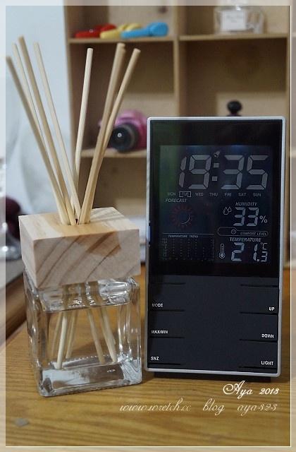 開學都過了快3周了~發現小五的哥哥還是常常睡過頭@@因為家裡的鬧鐘壞了>"~<加上年節太過糜爛 還是為孩子添加一個鬧鐘!!好久没上特力屋逛逛 沒想到最近一整個有好多優惠~真是讓AYA我一整個好手滑 今兒個就來分享桌上小物香香陪伴囉!!^^Y是說當AYA發現這個五合一彩色溫濕度計真的超開心的啦!!光說它是五合一 一機就擁有時鐘+鬧鐘+溫濕度計+日期+天氣狀況一整個感覺就十分的物超所值拿到實體更是讓AYA我好愛阿!!適中的大小 不管是放房間還是書房(電腦室)都不會占空間 整體的感覺也十分的有質感原價399元 AYA購買的時候特價才299捏!!買一個單一的鬧鐘應該也沒那麼便宜吧~大大的功能按鍵~整個操作簡單又易懂而且按鍵的設計 還有微微凸起 即使是昏暗的光現下還是可以很輕鬆的操作拿再手上適中的大小 差點讓肉丸先生誤以為是媽咪新買的手機勒!!轉一轉身背部的質感也是粉好跟按鍵一樣都有霧面的膠漆手感上不會有很塑膠的感覺唷~!! (雖是塑膠材質)不僅僅是機器本身的質感很好 還貼心的設計了站立的底座(而且是可以活動的唷~)如果想要將它掛在牆面上 只要將站立的底座取下就可以了~更貼心的是除了有裝設電池的地方以外 還可以外接變壓接頭 (但變壓器需另購)而AYA我還是選擇裝電池啦!!~ ( 因為移動方便咩)裝上電池後 就可以看見清楚的螢幕上面的字體大小 讓人看的清楚這連老人家也能很清楚的看見彩色的畫面看起來也十分亮眼繽紛除了時間想知道日期只要輕按一下MODE鍵就會跳出時間 連星期幾都是清清楚楚的標示對於粗心大意的孩子來說 可以確認隔天的日期來準備功課 這點AYA覺得很棒~當然另外讓AYA覺得更好用的就是它的濕溫度計 &鬧鐘除了個別的濕度以外還有顯示天氣狀況、溫度(華氏/攝氏)只要按下切換鍵就可以輕鬆切換而天氣的狀況則是用圖形來表示 就連4歲的肉丸先生都可以簡單分辨毎天的天氣~冬天就是要仔細觀察溫度與濕度適時的了解室內的濕度決定是否需要除濕健康的環境就是不能過濕或是過乾 環境剛剛好的濕度才不會讓身體生病還有讓家中的物品長霉唷!!有了這溫濕度計當然就可以簡單掌控何時開除濕囉!而且它的鬧鐘還多了貪睡功能這對於很會賴床的孩子們真是太方便啦!螢幕的LED也有節電裝置 平時都是處於節電的情況在正常光線下可以不需要使用LED當光線不足只需要按押SNZ或LIGHT按鍵就會亮起嚕!亮燈的時間大約是7-8秒當LED藍色背光亮起時 整個螢幕就會呈現彩色的狀態字體一整個清晰 就算是忘了看氣象 也不用擔心只要有了它隨時都可以輕鬆掌控當天的天氣概況也不用怕孩子會穿錯衣服唷~另外AYA也多敗了一樣香芬就是它去味大師竹木香-古典玫瑰 大大一瓶80ML原價215 AYA購買的時候也是特價只要169唷~打開包裝完全聞不到任何香氣 哈哈!!這表示它的包裝十分的完整 不會有外漏的情形唷~內容物除了本身精緻的玻璃瓶設計還有附上擴香竹&木制的瓶蓋安裝方式只要將玻璃瓶上蓋子轉開 取下塞子將木蓋合上後將擴香竹插入瓶內就可以吸附香氣讓空間滿室飄香精緻的玻璃瓶設計做為居家擺飾整個感覺十分的典雅而且它可以維持6週的清新香氣 讓空間擁有更清香的氣息!香味不會過於濃郁 室內隨時保有怡人香氛 讓空間更清新宜人唷~還有多種香味選擇喔!!多合一彩色溫濕度計哪裡買??http://www.i-house.com.tw/product/detail/id/412228去味大師竹木香哪裡買??http://www.i-house.com.tw/product/detail/id/420164來去特力屋逛逛:http://www.i-house.com.tw/別忘了結帳後要輸入Sharer+推薦代碼:ababqoo 唷!!