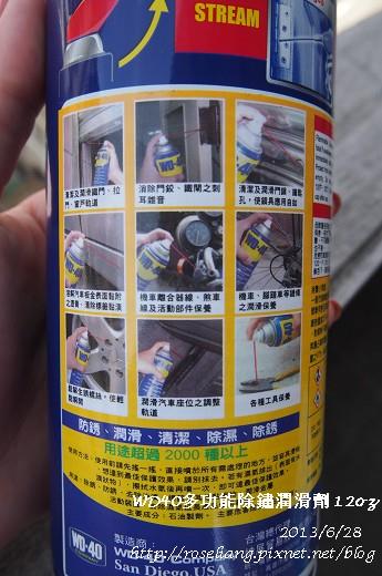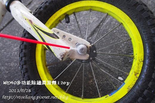 今天來介紹一個家用好物大家都知道WD40嗎?WD40原來是一種隔水劑經歷了四十次的實驗製造出來的所以叫過WD40(Water Displacement,40th formula)家裡本來都備有一罐因為他的用途真的蠻廣的不但適合各種金屬製品之保養維護集清潔、防銹、除銹、除濕、潤滑五大功能於一身-清潔:去除油漬柏油標籤塗鴉-防銹:形成保護膜,防止生銹-除銹:去除鐵銹,鬆解生銹螺絲-除濕:防止因濕氣造成電器短路-潤滑:潤滑活動裝置消除噪音這次我選擇的是有兩用噴頭的不管是大面積的噴霧或是單一定點的加強都很方便彎下來就可以用了(就像殺蟲劑一樣啦!)值得一提的是市面上的相似產品大多用甲烷為推進氣體且含量高達25%不但有害健康,氣味難聞且佔空間WD40用的是二氧化碳且含量只有少少的3%還有!這類油氣產品當然是要遠離火源的一定要注意唷!!介紹完畢快來動手吧!先把佑醬的pushbike拿出來處理一下有一陣子沒騎了螺絲轉接處有一些生鏽稍微刷一下再噴上WD40前面的龍頭也不要忘記保養一下還有家裡的鑰匙孔為了防止生鏽也可以噴一下鋁門窗的滑軌三不五時也要保養一下要不然要是生鏽的話很麻煩的~還有一個我覺得很重要的地方->系統廚房的滑軌要不然哪天卡住再處理的話真的容易割傷手<-受過傷的人orz家庭常備的潤滑防鏽產品推薦給大家唷!