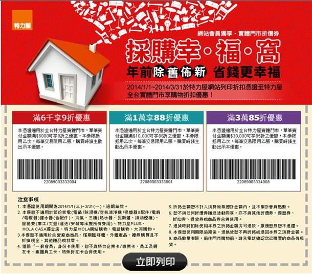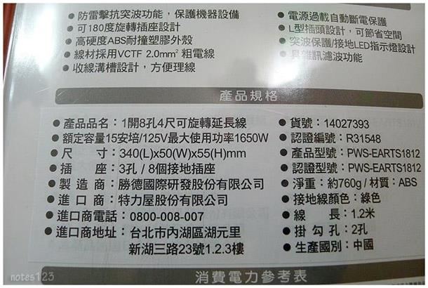 快過年了,大家應該也都利用閒暇時間進行大掃除,咱家老佛爺有特別交待,要把家裡一些壞掉或快壞的找時間修一修;剛好得知特力屋近期有折扣優惠,趁這機會來去檢便宜......我家離B&Q新莊店很近,其實平常需要一些生活五金之類的小東西,也都是跑來B&Q找,有時候無意中還會發現有趣又實用的東西店內不能拍照,咱們就恪遵規定把相機收起來2014/1/1~2014/3/31到特力屋要記得隨手帶上這張優惠券喔優惠券網址:http://www.i-house.com.tw/pub/edm/static/event/140101_HappinessHouseO2O/來看看我們這回去特力屋挖到什麼寶買了防雷擊突波的延長線、重複貼掛鉤、HCG單把手浴缸龍頭我一樣一樣來好物介紹一下,首先咱們先來看看這條特殊的延長線,防雷擊突波這功能雖然很棒,不過還不是它最特別之處,畢竟許多延長線也具備有這功能,不足為奇;對我來說它最特別之處在於它的變形功能,這就厲害了吊卡清楚的印了各項功能,包括新的旋轉插座功能在開箱使用之前,我們要來認識怎麼樣正確使用延長線1.避免過載:一般延長電源線於產品上皆會有標示最大使用功率,例如:AC125V 15A 1650W 即此延長電源線適用於交流電125V,使用電流不得超過 15A,總耗電量必須是1650W以內。 2.不使用延長電源線應抜掉延長線,避免一直讓延長電源線保持開用狀態,降低它的使用年限,令它加速老化引發危機。 3.延長電源線旁邊不可堆積雜物,亦不可使延長線遭受物品壓迫,外部力道擠壓易致使電源線受損,內部銅質導電就會受到影響,電源不順暢將進而產生高熱,可能因此引燃延長電源線旁堆積雜物,進而產生火災。產品規格標示與消費電力參考表,實際還是得看各商品的規格標示再來我們就實際開箱來比較看看像上圖這種情況應該很常見,生活中我們有太多電器使用變壓器,像網路AP、Wireless Router、iPad、無線電話......這些採用變壓器,常常遇到的情況是變壓器會佔掉額外一個插座,這時候除了換上更多孔的延長線大概別無他法看一下這個旋轉座的變形功能,不會因為使用變壓器而遮檔到其他插座延長線尾端還有收線溝槽設計,方便整理避免雜亂保持美觀第二個要介紹的是目前特力屋特價中的HCG 浴用龍頭這組浴用龍頭有何特殊之處呢?產地:台灣精密陶瓷軸心: 採用精密陶瓷軸心,經久耐用。 經測試壽命可達50萬次操作性能穩定: 本產品操作時之上、下、左、右,操作力0.7kgf,操作輕巧順暢。和成為國內給水銅器製造業,第一家通過ISO9001國際品質認證,原料採用純銅錠,不添加廢銅。 品質穩定含鉛量遠低於JIS標準上限3%,安全無虞,為您的健康把關。除了以上的官方說法,其實在現場試操作時,它有一個跟其他家不同的操作設計讓我很喜歡,且聽我道來先看看我們家的舊龍頭這種浴缸龍頭都是使用上方的切換頭來控制水流,拉起時為蓮蓬頭出水,壓下時為下方出水,不過長期使用下來,我們家這個切換頭會在使用中自動掉下去,導致淋浴到一半時突然水跑到下方去了HCG的切換頭,拉起後轉個90度會固定在蓮蓬龍出水,當有需要轉到下方出水時,只要再輕輕轉一下就可以囉換龍頭需要準備這兩項工具,止洩帶與水管鉗換上新的進水彎管進水彎管先用紙膠帶包起來保護,這樣可以避免等一下使用工具安裝時造成表面刮傷,自已DIY盡可能的做到最完善裝上法蘭罩、纏上止洩帶最後看一下完工狀況舊的掛鈎保留著淋浴時使用,新的掛鈎鎖在低處方便公子們使用接下來介紹好用的重複貼掛鉤這東西我們前前後後買了好幾個像這樣子直接貼在浴室磁磚上,水瓢吊在上面也不會掉落吊掛沐浴球最重要的是它拆起來之後可以重複使用,只要把背面的貼合面用清水沖乾淨就可以了最近有要佈置家裡的,別忘了先去下載特力屋的折價券,2014/1/1~2014/3/31期間限定優惠券網址:http://www.i-house.com.tw/pub/edm/static/event/140101_HappinessHouseO2O/如果對以上商品有興趣完成訂購時,請幫忙填入推薦代碼:notes123
