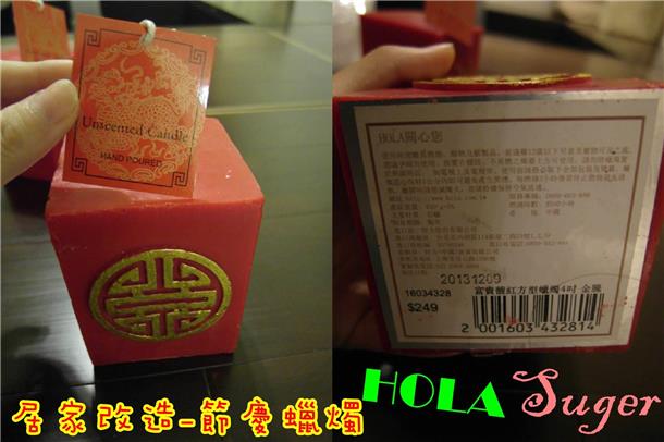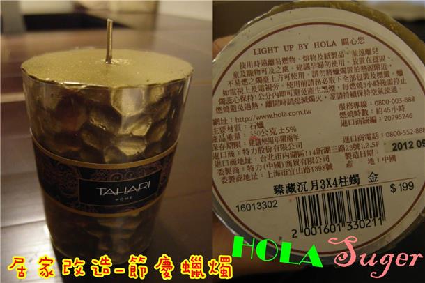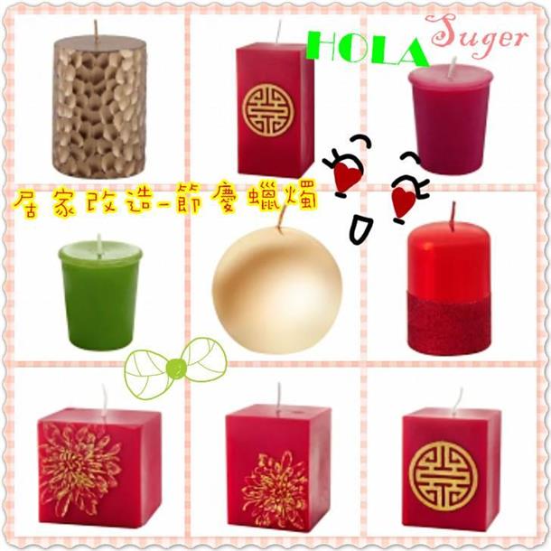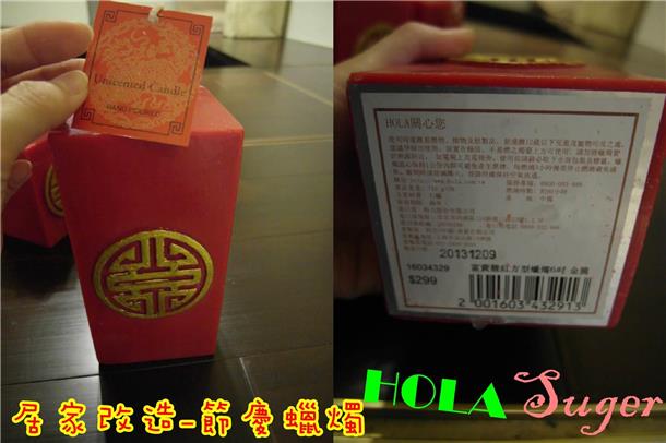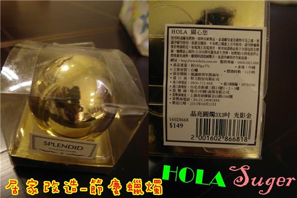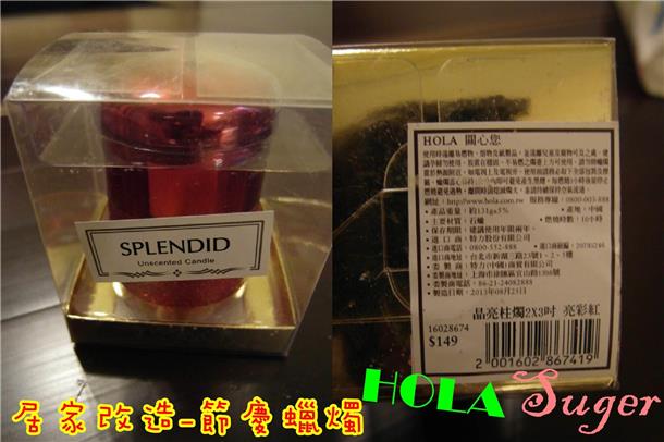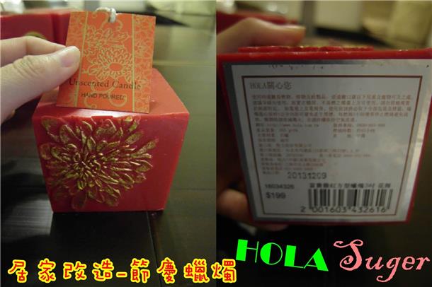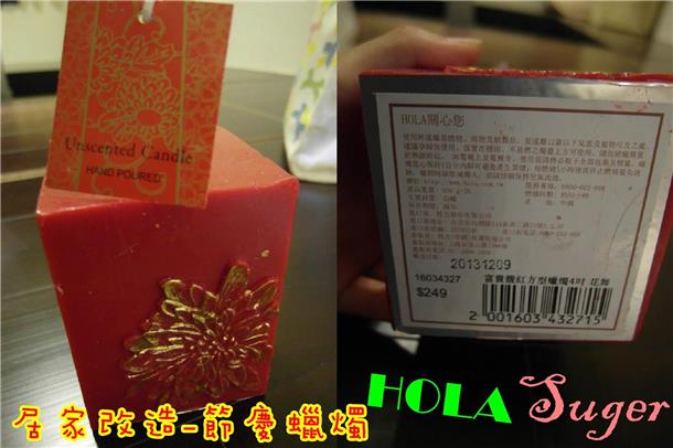 這次我用這九個蠟燭來布置家裡~快要過年了除了大掃除以外就是會想要好好布置一下家裡了這次我很意外的是~小小蠟燭,發揮大大效用呢!隨便一擺,就超有過節氣氛~很開心地下單~打開來,每個商品都有包上泡棉有透明塑膠盒的,就沒有包上泡棉這包裝其實有一點點點點扣分因為內容物跟箱子的空間還那麼多居然沒有塞些報紙還是啥的~~在運送過程中,載小心搬運還是會有些許因為那些空間關係碰撞到吧?!這次商品我一一檢查,全部完好如缺可能是外箱上的[易碎品]貼紙奏效吧 哈 1. 富貴馥紅方型蠟燭4吋 花舞我喜歡紅+金色~整個喜氣洋洋還添加了金色的華麗感!立體的金色花朵,增添設計感2. 富貴馥紅方型蠟燭3吋 花舞這個跟上面的是同系列的,只是尺寸不同正方形的蠟燭也很讚! 3.富貴馥紅方型蠟燭4吋 金騰復古圖騰整個也很有過年的FU~~~!!4.富貴馥紅方型蠟燭6吋 金騰跟上面那個是同系列的,只是大小不同立體的復古圖騰,底色紅色加上金色圖騰~也是華麗十足5.晶亮柱燭2X3吋 亮彩紅紅色亮面搭配金粉設計,閃耀光芒,下面的亮粉,讓整體燈光打下去,會閃亮亮的~6.晶亮圓燭3x3吋 光影金這個金光閃閃的~我一眼就很喜歡它!感覺就會幫我帶財 哈 7.臻藏沉月3X4柱燭 金這個實品,出乎我意外的好看!!整個超有質感外面的紋路顯得貴氣華麗!!8. 罌粟玫瑰香氛許願燭 (紫紅)淡雅香氛,營造空間溫馨氣氛,點亮同時香味讓空間滿室馨香增添優質生活樂趣,燃燒時間約8小時想說如果家裡有悶悶的味道,可以點這個~廁所阿~廚房~客廳~房間都可以放一顆,很方便!! 罌粟玫瑰香氛許願燭 (紫紅) 9. 檸檬香草香氛許願燭 (草綠色)跟上面那款同系列,價錢超划算的~哈我多買了一個,想要讓家裡都香香的^__^檸檬香草香氛許願燭 (草綠色) 放上幾張,官網上的圖片超美的~很華麗呢!! 這個也很漂亮,金銀系列~閃亮亮的^___^接著我來擺設了客廳一擺~馬上不一樣呢!!搭配結婚的可愛娃娃擺設,好配喔!整個超有過節氣氛呢!!紅色這個~我擺在魚缸旁邊還有財神爺跟聚寶盆整個覺得這個很厲害呢!只要一顆蠟燭就很有FU~快幫我招財吧!!哈書架上~選了金色的圓柱跟球~整個很不一樣了!!香氛的許願蠟燭,先放在放酒杯的地方!小小的~紅配綠也很好看所有商品~到 http://www.hola.com.tw/product/menu/id/34 全都可以買的到喔!! 順便推薦大家一個很棒的平台~Sharer 裡面有好多人推薦的好物喔!!文章超多!!還可以直接點選商品,超方便的-->邀請您將您【改造之心得】,或【好物的使用】,分享於Blog與分享+平台分享+平台:www.sharer.com.tw/這平台還可以賺回饋金呢!!只要到HOLA or B&Q特力屋網路平台購買商品,不是紅利集點,還是讓你賺現金回饋呢~分享+鼓勵您樂於分享,只要您將喜愛的商品或使用過的感受分享成圖文給網友們,當網友購買成交後,您就可以獲得該商品的推薦 回饋獎金。不論是在Blog或個人/公司的網站也能放置貼紙,讓您添加額外的收入。分享+就是透過簡單的推薦及分享的方式,來讓您賺取回饋獎金。 在結帳的時候,填入自己的推薦代號就OK!如果您不想申請,也可以填入我的代號喔^___^ -->suger25 ((PS 本人無任何報酬,只是體驗蠟燭而已^___^ 感謝B美女它家借我拍攝~我家超亂,還正在整理中,整理好才會擺上蠟燭 哈哈))完整圖文文章分享在~http://suger25.pixnet.net/blog/post/348617543
