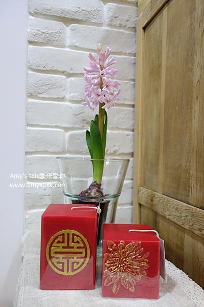 每年過年,我都會特地做些應景布置,以增添年節歡喜氣氛。主要布置元素就是花花草草,水仙花、風信子、蘭花、銀柳、百合等等幾乎每年都會買。今年除了花之外,還特地在HOLA網路商店買了二個節慶裝飾蠟燭和一個非常「過年」的隔熱墊。這二款蠟燭都是紅色,且跟一般傳統蠟燭圓柱造型不同,採方型搭配立體圖樣設計,其中一款圖案為花朵,另一款則是充滿古意的圓形圖騰,圖案上都用金漆點綴,喜氣氛圍更為凸顯。在花市看到這盆好彩頭,有別於一般單一大顆的菜頭,六小顆帶著綠葉的紅菜頭更為討喜。後方的長春藤則是買了二小盆回家後,我自行換盆重種的。兩盆植栽前後一擺,已經可以聞到過年氣氛。加上裝飾蠟燭後,年味更濃,視覺上也更有層次。這兩天天氣大好,風信子比預期時間早開花,兩個女兒都愛特地到風信子旁邊深呼吸,並讚嘆道:「好香、好好聞!」風信子姿態優雅,前面擺上節慶蠟燭也是協調迷人。這兩款節慶蠟燭真是百搭。搭南天竹也好好看。謝謝Daily Deli的帥哥老闆剪南天竹送我紅心。放在玄關桌上,再加上金元寶,好有氣質的招財進寶布置!跟若寶的發發發發小盆栽放一起也好看。今年的蘭花是姐姐搭配的,本來老黃覺得稍微樸素了些!加上節慶蠟燭後,年味就出來了。這款有著繽紛花朵圖騰的Cocotte21公分圓形隔熱墊,買的時候我就沒打算拿來當做隔熱墊用啊!瞧這樣立起來一擺,就是個應景的過年擺飾。襯在好彩頭下面,真美。上面放南天竹也好看。本來就預計節慶蠟燭買來只單純做擺飾,點蠟燭的工作就交給這個手工玻璃製燭杯。冰裂紋設計,十分華麗。暖暖的燭光於燭杯中照映,暈黃而優美的光線閃耀跳動著,更增添過年團圓的溫暖氣氛。晶鑽手工玻璃燭杯 http://www.hola.com.tw/product/detail/id/440616Cocotte圓熱墊21公分抽象花束http://www.hola.com.tw/product/detail/id/443920富貴馥紅方型蠟燭3吋 花舞 http://www.hola.com.tw/product/detail/id/451486富貴馥紅方型臘燭4吋 金騰 http://www.hola.com.tw/product/detail/id/451488都在HOLA網路商店買。 如果你有在特力屋或HOLA網路商店購物,結帳後請記得輸入我的share+推薦代號amylin喔!大感激。本文同步發表於Amy's talk愛米愛你:http://www.amystalk.com/