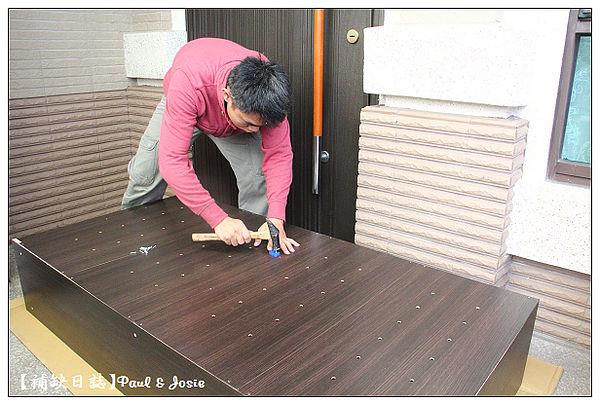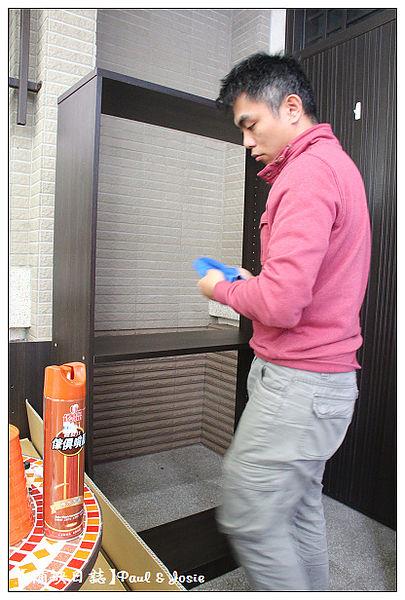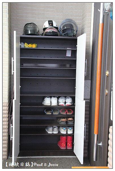 原本放在我們家玄關的是《伯恩五層開放式收納鞋架》,若是FOR我們小倆口其實還滿足夠的,而且還有多的鞋子收納空間!但因為家裡人口數即將在三月初要增多,我們已馬不停蹄的開始整理家裡、房間及預備傢俱,在玄關的鞋架就有些顯得不夠用了!於是乎...特力屋就是一個挑選DIY傢俱很不錯的的地方!剛好玄關有設計一處是放鞋櫃的地方,基本上我們是小材大用,之前的五層鞋架實在是非常浪費往上延伸的空間。趁著這美好天氣的228連假,趕緊來組裝鞋櫃。先把鞋櫃的左右側板拿出來!小的電動起子因沒充飽電不夠力,老公只好拿出插電型馬力超強的電動鑽!鞋櫃底部有附上防刮花、可保護地板的<腳粒>。因為這是一般的E1板材,加上我們又是放在戶外,花蓮因為靠山、靠海又靠田的,基本上也算是潮溼,夏天時還好,冬天可就會發一層可怕的霉!可以先用<傢俱蠟噴霧>先擦過保養,約略是半年要保養一次,對於抑制發霉有很好的效果呦!背板的釘子有很多,因為很薄要釘牢些。這個環保E1高四門鞋櫃還不錯!竟然會有貼皮美背...通常特力屋的DIY傢俱幾乎很少這樣!這小工具超好用!是<鐵釘夾>,可以夾住釘子來釘!釘下去後再移開~這樣就不用怕DIY時釘到手。(老公說之前有幾次DIY傢俱時不小心敲到手)方便極了!於是…這小工具就收納至老公的工具箱內了!老公說現在DIY傢俱真的方便許多,現在隔板都不用螺絲鎖層板的!直接用這種<隔板托>即可。每個隔板都一樣得上蠟,最難處理的就是門板了,門板與櫃體的連接是使用<西德活頁>來連接的!基本上,裝上去的門板還需要調整一番,花不少時間,連接好後再將<把手>裝上。裝好、調整好整個鞋櫃也差不多需要花將近三個小時。Update後的【雅緻環保E1高四門鞋櫃】,它的淺色系貼皮和我們家外觀貼磚的顏色很接近!低調的色系非常適合家裡風格,雖然這不是定做尺寸,高四門鞋櫃的尺寸是高160X寬80X深31.8公分,寬度增加後,較符合並恰當的放入鞋櫃的小小空間,高度增加後,可以將鞋架往上延伸,反而不會浪費空間。這四門鞋櫃有中間的<固定板>剛好將鞋櫃分成了上下層,剛好上層給高雄的爸媽或親友用,下層就留給我們二個小夫妻和得德使用!在鞋櫃的最上層還可以擺上幾件客用的輕便雨衣,而最外層則是放上可方便拿取用的安全帽。商品詳細說明:環保E1板材質十層大空間活動層板,可自由調整高度約可收納40雙鞋(真的非常適合我們全家來使用)Sharer+推薦代碼:match0000(選我!選我!至特力屋、hola網路店購買時可複製、貼上代碼)