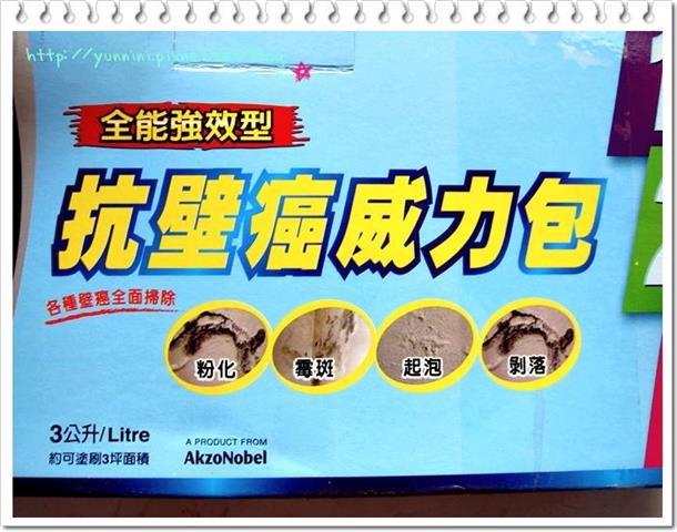 我家也不是什麼老房子,但很奇怪就是我房間的靠外面的牆壁~是病入膏肓的壁癌啊!想看看嗎?真的很恐怖啊~下面請大家慎入好嗎?真的是很嚴重又恐怖的壁癌啊!真的喔!你準備好了嗎?來了喔~先從最和善的小地方來看看好了~看這窗台上啊!漆都脫掉了呢!虧我還漆了美麗的薰衣草紫色呢~這呢也是小小的case喔!真正大條的要來了各位~山大王就是他!!!!唉呦威啊這~根本就是病入膏肓啦~所以每每看到想要處理壁癌我就退避三舍啊!只能用驚悚片來形容了!但客倌啊~這可不是全部呢!啊哈哈哈哈(自暴自棄中)所以這次看到特力屋有賣組合的拯救壁癌救星,我眼睛都亮了呢!!!得利抗壁癌威力包,就靠你了呢!擁有以下強大的功力呢!*超強防鹼抗粉化,除霉殺菌斬霉根*防水封閉性能佳,專業強效防滲水*水性配方更環保,高性能長效持久6大威力1.超級耐鹼抗粉化有效對抗牆內鹼性物質侵蝕漆膜,處理粉化、壁癌等問題牆面最有效果。2.高滲透性防水強快速且深入滲透牆面底材,並提供強大封閉性,完全包覆底材形成牢固的防水膜,確保牆面不受水氣滲透及鹼性物質侵蝕。3.優異撥水性 滴水不入讓牆內水氣不易滲出牆面,達到良好阻絕及防水效果,形成牆面防水保護膜。4.除霉殺菌斬霉根進口原料、台灣生產製造、具有強大除霉殺菌效果,徹底清除霉菌及孢子,預防牆面霉菌再度孳生。5.流平性佳好塗刷漆質滑溜,塗刷順手,且不易垂流,落實每一步驟所使用的功能性產品及塗刷程序,就可以輕鬆處理壁癌牆面。6.水性配方更環保不添加鉛、汞、鎘等重金屬及甲醛的水性環保配方,對環境友善,居家更健康。一組有三罐,也就是三個步驟~ 這樣一組大概可以用1~3坪左右,但我房間這疫區應該只能用1坪啦!哈哈哈廢話不多說,我們開始第一罐的作業吧!使用前要先用刮刀,用力仔細的把牆面尚未脫落乾淨的殘漆跟粉塵刮下來,露出最外層的病源啊!刮完後再用濕布(乾布好像也可以,但我的是大症狀啊!)把粉塵都乾淨,等待牆面乾燥。此時就拿出第一罐啦!「得利強效除霉液」1公升,就是除霉殺菌斬霉根。進口原料、台灣生產製造、具有強大除霉殺菌效果,徹底清除霉菌及孢子,預防牆面霉菌再度孳生。倒在容器裡,我們大器的用油漆滾輪用的盤子裝了,然後仔細的擦在患部(不是啦!是壁癌處)擦之前是這樣的擦之後水泥顏色深了一點然後都塗到第一罐除霉後,很重要的就是等待,說明上市寫說至少要等到完全乾之後才能上第二罐,但若想要深入將霉根殺死的話,最好靜至24小時,由於病入膏肓的厲害,所以我們決定等上24小時,所以工程暫時停止了。就在這24小時後~山大王看了一下說明後發表了爆炸性的宣言,我決定再上一次第一罐!蝦米~又要繼續等了!所以又上了第一罐除霉,畢竟壁癌的重點其實就是滲水發霉,所以黴菌沒有除乾淨,就是春風吹又生啊!然後等到乾了~(我都吃兩餐後了我,哈哈哈)防水。「得利強力防水封固液」1公升。優異撥水性 滴水不入讓牆內水氣不易滲出牆面,達到良好阻絕及防水效果,形成牆面防水保護膜。要準備上第二罐(提醒大家處理時,一定要配戴口罩,且保持房間對外的通風),因為我當天在裡面玩耍太久,雖然有戴口罩,門窗也都開著,但我有點頭昏昏的呢!多喝水休息一下就好囉!來了!第二罐是有點乳白透明的,稍稍的有點稠度,塗完後還是要等到全乾,但是我的假日也過啦~!要回去上班了,接下來的重頭戲,等我下個六日來繼續完成啦!未完 待續得利抗壁癌威力包適用於發霉、遭受鹼性侵蝕粉化、吐鹼、漆膜剝落、壁癌等問題牆面。適用底材:水泥牆面、矽酸鈣板