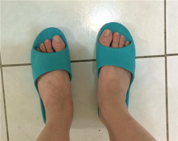 上禮拜去HOLA中和店逛發現架上的拖鞋正在特價 四雙六百元剛好家裡的拖鞋有些老舊需要汰換掉毫不考慮的就拿了四雙不同顏色的拖鞋往購物車放我買了灰色 土耳其綠色 粉紅色 紫色各一雙回家立刻拆開穿拖鞋沒什麼重量 穿起來走路腳步不沉重相對的腳變得好輕鬆無負擔 拖鞋穿起來有防滑的感覺 大家請看看 這樣子不曉得是不是底部有做防滑的效果?這拖鞋一穿上 我就愛上它了重量輕 又好清潔 且不卡狗毛很適合家中有養寵物的朋友們 現在去HOLA門市購買 就有任四雙600元的優惠真的很划算推薦給大家