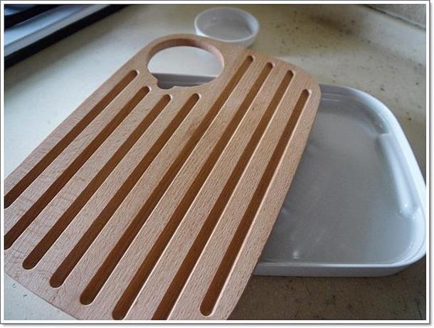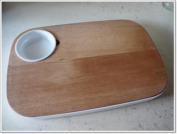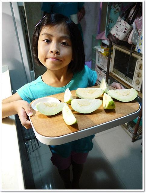 (我們家的小服務生~哈哈)廚房又進新貨了,這次進的新貨是Joseph Joseph 好品味木質兩用砧板,因為一直缺切熟食的砧板,所以這次就下訂了一組大質兩用砧板,我很喜歡............(是說廚房的東西,有什麼是我不喜歡的嗎?哈哈)歡迎你,我的木砧板兒~ Joseph Joseph 好品味木質兩用砧板,是由來自英國雙胞胎兄弟,在2003年時一同創立的品牌Joseph Joseph,專門設計很創意兼時尚的廚用品,看了他們家很多的作品,個人我很喜歡,因為Joseph Joseph讓廚具不再只是日常用品,而是融入生活兼具實用與創意的典藏品......................Joseph Joseph 好品味木質兩用砧板尺寸:35.2 x 23.2 x 3.4cm,材質:美耐皿、櫸木這款木砧板可以兩面使用,其中一面有設計溝槽,溝槽要做什麼用呢?可以用來收集麵包碎屑,也可以在切水果時,湯汁可以集中在溝槽,這樣湯汁就不會亂流,是不是很讚!在砧板上還設計了一處放調味料器皿的地方,對!重點來了!為什麼叫兩砧板就在這裡,因為還可以直接上菜,不用再另外拿盤子裝盤耶! 砧板可以拿起來,再換另外一面,另外一面的設計是平面式的,只要在底下墊個料理紙,就可以在上頭切熱熟食,像是油炸的,或是滷味..........等等!! 慈小妹在吵著要吃水果,好吧! Joseph Joseph 好品味木質兩用砧板的處女秀,就獻給芭藥先生吧!我切~我切~我切切切! 切好後,盤子都免了,直接在砧板上擺盤,因為空間夠大,所以可以擺的空間更大,今天就擺了兩朵芭藥花~ 在托盤的旁邊還設計的握把,讓我們很方便的就可以將砧板整個端起來~ 客人如果來家裡作客,見到我們是用這種方式上水果,不知道會不會嚇到! 有種摸蜆仔兼洗褲的感覺,可以當砧板使用,又可以當盤子擺盤使用,重點是,我只要洗一次砧板就好了,好讚吼!(老公說:你會不會太懶了) 不是我懶啦!我要申明一下,阿人家就這樣用心的發明這個好東西,怎麼可以辜負產品的優點而不用,對吧!對吧!PS:提醒一下,木砧板洗好要直立瀝乾,不可以浸泡在水中哦!Joseph Joseph 好品味木質兩用砧板,哪裡買?http://www.hola.com.tw/product/detail/id/409424報告完畢!下課!以上為人妻HOLA網路店敗家實錄......謝謝觀賞~如果你也是HOLA和特力屋的忠實買家,記得把你買的好物分享給大家,大家一起來賺回饋金吧!GO~GO~GO~Emily的推薦代碼:emily196367謝謝!!《sharer分享+》http://www.sharer.com.tw《HOLA》http://www.hola.com.tw《特力屋》http://www.i-house.com.tw