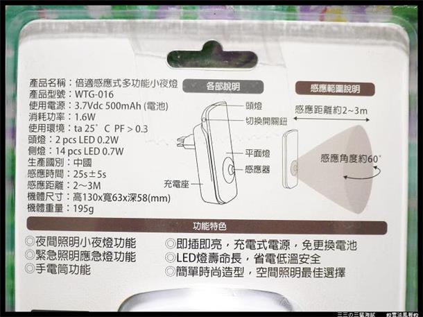 以前小夜燈只是單純照明作用,現在不但多了一些功能性,而且外觀都很有設計感! 我超愛買小夜燈的!烏漆抹黑的夜晚,一點點燈光就會感覺特別溫馨! 這個是bass感應式LED多功能小夜燈,這回到特力屋一眼就看上了! 它有三種功能~平常夜裡是小夜燈,需要時也可當成手電筒或緊急照明燈! 很漂亮吼?好像一隻手機,大小也差不多! 分離式的充電座,採用的是感應無接點充電方式,還有磁性喔!所以將主體直接吸附在充電座就OK,充飽電之後也會自動關閉充電功能,所以不用刻意拔除! 在黑暗的環境中有人移動,它就會自動感應發光;人走過去後一定的延遲時間,它也會自動關閉,是智慧型省電無誤! 剛剛平面燈有14顆暖白光LED,頭燈有則是2顆冷白光LED! 馬上變身為時尚又高亮度的手電筒! 輕按開關,一秒鐘自動切換! 另外這個是南極之星LED小夜燈! 看似簡單陽春版,其實聰明地很,自動光控式的唷! 雙色燈罩可以360°旋轉,輕鬆控制發射出來的亮度! 馬上來做個測試!光線昏暗~它會自動亮燈,光線充足~又會自動熄燈,安全又省電! 插頭也可以360°旋轉,家裡的插座方向不管直的、橫的都適用! 最後還有一款人體/明暗感應LED白光條燈! 細細長長的造型真的很少見,長度約27.8公分,寬度則只有2.2公分! 上頭有3顆LED燈,感應開關底加! 它適合安裝於走廊、玄關、樓梯、衣櫃、櫥櫃等,完全不會占空間!安裝方式可以直接用附上的雙面背膠貼上! 也可以將雙面背膠零件移出,用懸掛的方式! 它用3顆4號電池供電,電池要自備,LED燈設計,省錢又便利啦! 在黑暗的地方一偵測到人體後會自動亮燈,亮燈時間約可持續40秒!尼侃侃~黃色的燈光投射在櫥櫃裡,不但有一定的照明作用,還非常有氣氛! 感恩在特力屋和HOLA完成訂購時,填入推薦代碼sh73713再按"分享賺"!甘蝦~^^