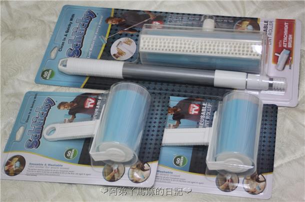又到了年關大掃除的時候了大家都準備好清潔用具了嗎?工欲善其事必先利其器選擇好的清潔用具可以幫助我們達到事半功倍的效果像我家中的最大麻煩就是毛髮及塵螨的處理自從生過孩子後頭髮從不間斷的掉髮床上、地上到處都是連我家老爺也因為年紀關係漸漸雄性禿哀~~~每天只要看見床上、地上又有毛髮整個心情就很不好怎麼好像怎麼掃都掃不完的樣子所以~這個時候去特力屋逛就對了我發現有一種不用耗材、不需購買紙捲、環保又省錢的好物它可以輕鬆黏除各種布料織物上及各種物品表面上的灰塵毛絮及毛髮更棒的是可水洗且可重複使用N次ㄛ讓我超級心動的滑下手啦!!就是它!Schticky免紙隨手黏我買了兩個(短柄)&一個(長柄)Schticky免紙隨手黏(短柄)商品尺寸:長18,寬11.5,高6.5(公分)Schticky免紙隨手黏(短柄)一個放室內用於清理床上毛絮、毛髮、頭皮屑一個放車上用清除汽車內掉落的食物碎屑等每個Schticky免紙隨手黏都有附上防塵蓋第一次使用時必須將隨手黏的透明紙撕下來就可以馬上使用啦~這是我家老爺的枕頭巾遠看好像沒有什麼不一樣呀!其實近看~嚇死人ㄛ滿滿都是掉落的頭髮使出我的法寶~Schticky免紙隨手黏(短柄)~去~回~去~回~翻滾中~嗚哇~黏性真的超強的我想連頭皮屑&棉絮都已經緊緊被黏得跑不掉啦!老爺~您的毛髮我已經幫您清乾淨啦!枕頭巾乾淨溜溜不留一絲絲髮!使用後的Schticky免紙隨手黏(短柄)因為黏滿髒污後會失去黏性所以必須以溫水沖洗清潔請在溫水水流下持續轉動滾筒這樣才能順利沖洗掉所有黏附的髒污像我這樣沖洗時用臉盆接著水及毛髮沖洗後將毛髮撈起就不怕毛髮會阻塞水管ps:若是髒污時在沾黏的太嚴重那就用少許肥皂搭配溫水沖洗沖洗後的Schticky免紙隨手黏(短柄)尚未全乾還有微濕的狀態時仍無法發揮黏性若要接力繼續使用的話那就必需使用無毛絮的布拭乾待滾筒完全乾燥後才能恢復黏性再次使用平時不用時一定要套上透明防塵蓋並放置在陰涼乾燥且乾淨之處保存才能長久使用Schticky免紙隨手黏(長柄)商品尺寸:長51,寬20.5,高9(公分)長度比短柄長寬度較短柄小些Schticky免紙隨手黏(長柄)附的是組合式的伸縮桿將旋轉頭轉入即可再依個人需求調整長度初使用一樣需撕除封膜我發現防塵蓋的設計很貼心有一根一根塑膠凸出物我想它是為了讓Schticky免紙隨手黏(長柄)可以站立不因伸縮桿重心不穩而東倒西歪Schticky免紙隨手黏(長柄)適合清除窗簾/地毯/腳踏墊上or清除地板/人 工草皮/人造植物上...等累積的灰塵毛髮更厲害的是免用殺蟲劑也能黏除家中擾人小蟲。對於窗簾我家已經有一整年沒有換洗了趕緊來滾滾清潔一番吼~是不是~就是有灰塵用這種隨手黏的好處就是隨滾隨黏不怕灰塵會隨風吹飄落(散落)當然也要用溫水好好將灰塵潔淨哈哈哈~~有了這些長、短柄Schticky免紙隨手黏我就不怕灰塵、毛髮危害我的居家環境而且省去市面紙捲式清潔滾筒必須買紙捲補充的麻煩既環保又經濟實惠不虧是家庭主婦的必備器具!