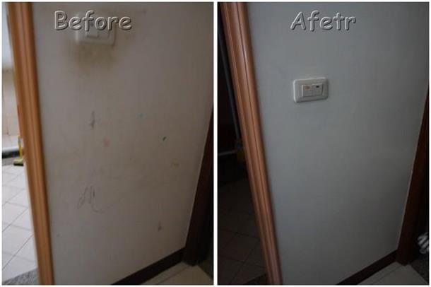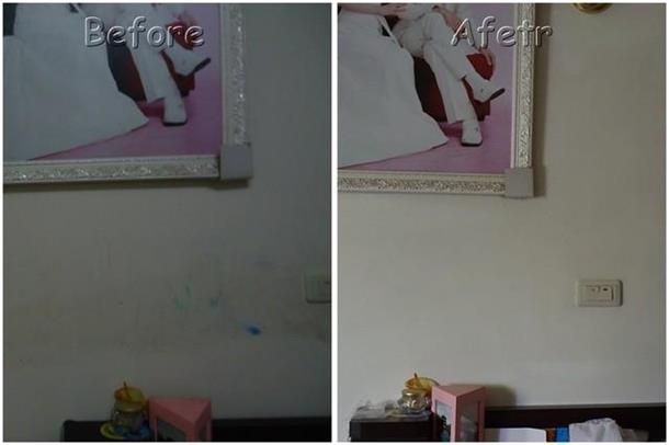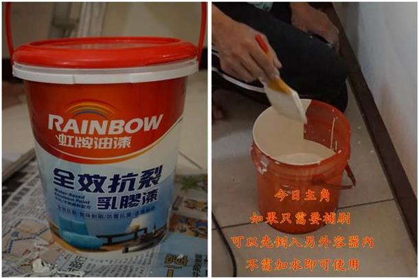 蜘蛛網走開~還室內一個清白~全效抗裂乳膠漆~我們家兩個小傢伙都很喜歡畫畫,雖然最近已經送他們到美術班去學畫畫了,但是...這幾年他們的藝術天分也幫家裡製造出很多的圖片(真是令人賞心悅目阿!!!)說真的就是醜暑了啦!!但是礙於現在的孩子打不得,罵不得,(怕被說家暴),也為了要讓孩子更增自信,也不能罵他們說不好看,只能默默的...生氣!!!!最近年關將近了,房子也快邁入第12年了,有看到好多地方,都有蜘蛛網般的裂痕,趁著個機會來幫牆壁上在從粉刷一次嚕~下圖-你看小傢伙們多有藝術天分阿!!連手掌都能幫牆壁作畫了!!(捧胸搖頭中)星期六晚上才跟著老公到特力屋選購油漆,原本還在想到底該選用易潔乳膠漆,還是全效抗裂乳膠漆?有需要可以點【產品介紹】研究看看!!老公說,因為家裡主要是蜘蛛網般的裂縫較多,而且房間也比較潮需,需要能夠防霉抗菌,所以先選購抗裂乳膠漆應該就可以了,如果油漆顏色無法將小孩的彩色筆壓過,在使用紗紙稍微磨一下就可以了,另外在有裂痕的地方,還是要在使用補土先將縫隙補起來~如果小孩還是要在畫在牆壁,那下次一定要買易潔的應該會比較持久,比較耐用些!!今天星期天一早,才剛睡醒,就看到我們家老公就自己先在房間補土DIY了起來了,上次在特力屋購買的補土還有,所以就不必再購買,還可以再繼續使用~先來說說這虹牌油漆,【全效抗裂乳膠漆】它屬於水性漆,可以加入水刷,但我老公說直接刷效果很棒!!說真的,比較起一般油漆來說,這組油漆真的味道比較沒那麼恐怖,聞起來就是比較沒那種有毒油漆的味道,應該是說"比較無毒"味道!!感覺也比較安全啦!!而且不是油性漆,所以使用起來感覺也比較環保~因為沒有太多濃厚的毒味道,所以老公也讓女兒參一腳,一起參予油漆工作~也因為沒有濃烈刺鼻的味道,我們家這位有潔癖的小妞還可以在那邊照鏡子打理自己~(真好笑^^)而且~當我吃完早上後,走上樓看,我居然他們已經都油的差不多了,haha~好快喔~完全不用老媽子來幫忙~有了上次的油漆經驗,現在油的真的不輸油漆工人了唷!!(真可說昰"熟能生巧"阿!!)下面是幾個比較經典的比對圖,真的差好多喔~同時也感受到家裡有煥然一新的FU唷~多麼亮麗阿!!他們父女花了一個早上的時間,將2間房間裂痕、髒汙,彩繪的地方都補擦了完成了,感覺自己DIY要讓家裡有煥然一新也不是件難題,快過年了,各位也要好好的幫家裡稍微修飾一下唷~特力屋裡有很多居家生活的好幫手,平時只要花少少的錢,花點時間在DIY上,親子同樂一起做,這麼一來,看他們下次還敢不敢再亂畫牆壁^^彩虹屋 服務據點