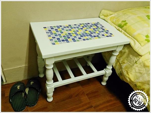 年前大掃除時,看見長年堆在後院的舊家具,要丟可惜,不丟就擺在那裡長灰塵,就在那個啊砸時刻,心裡的DIY改造魂~被~觸~動~了~▲立馬上網做功課,選擇了》虹牌油漆「彩虹屋系列-全效抗裂乳膠漆」防霉抗菌:通過日本防霉JIS Z 2911及抗菌JIS Z 2801測試檢驗合格全效抗裂:抗裂伸長率100%以上低氣味:低氣味樹脂及不添加人工香精耐刷洗:達CNS乳膠漆規範30倍以上,好刷好塗,施工容易▲此款乳膠漆採用低氣味樹脂,味道不刺鼻,適合用在建築內部裝飾用色彩之面漆,且很好清潔▲多年前家裡更換為沙發後,這組木頭和大理石結合的材質桌椅就這樣一直被堆著▲長灰腐壞、掉漆剝落…感覺好可惜,於是嘿嘿~動心起念,來改造囉!▲因為木頭桌椅表面有防水層,所以必須用砂紙先把其表面處理一番,以利上漆▲把髒污灰塵磨掉,也把防水層磨得變粗糙一點▲家具改造的前置作業完成之後,主將》虹牌油漆「彩虹屋系列-全效抗裂乳膠漆」就登場囉!▲這種旋轉罐口包裝比起以往總是要拿工具才能撬開的鐵罐壓口方便很多▲旋開罐蓋裡面還有一層隔離蓋,它的密封性、保護性也很高▲使用前須徹底攪拌均勻完全調和,完成的比例感覺起來會濃稠適中▲介紹到這裡,要安插一個實用小撇步給大家唷!就是把橡皮筋套在罐子中間,就是非常方便的瀝漆工具,一點都不怕罐緣沾得到處都是▲把剛剛磨砂處理好的桌椅上第一層漆,我選擇的是較粗的毛刷,想製造一點痕跡觸感▲然後很快的~我刷~我刷~我刷刷,第一層的漆完成了▲待乾後接著上第二層,感覺顏色飽實很多▲在漆完全上好後,接著把馬賽克磁磚排列在原本桌椅上大理石材質的地方,然後用補土把縫隙填滿磁磚當然要先固定在位置上不動啦!在這裡我是直接塗漆未乾時就黏上去了,但是如果害怕無法一次完成的話,建議可以用白膠慢慢排慢慢固定自己想要的位置喔!▲然後要在補土還沒完全變硬乾掉之前,把多餘黏在磁磚上的用布或海綿沾水濕潤擦拭掉▲滴答滴答~將將,有沒有亮麗水噹噹?!▲復古木工工法,再重新改造上漆後一樣美到破錶,感覺又可以耐用持久好一段時間了▲你在看我嗎?你可以再靠近一點,哈哈哈~沒想到虹牌乳膠漆的質感超細緻的!▲改造完的小桌子就讓它擺在我的床頭旁了▲夢幻公主模式啟動!▲再看一次改造前和改造後,嘖嘖嘖,剩下的椅子我要加把勁了!(熱血鬥志)