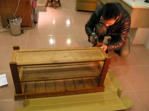 我家有實木穿鞋椅囉 我知道這張照片還擺pose真的很假行,但為了凸顯丫頭很喜歡這個【實木穿鞋椅】,一定要這樣演一下~ 終於讓我等到它特價,還要在初三旅行中記得買才有599coco。 松木&台灣製 這張實木穿鞋椅,沒有臭味喔!米先生組合的時後完全沒有戴口罩,也沒有過敏,台灣製果然是品質保證。 示意圖+材料 大概是米先生工具真的很強,還很驕傲地說~要拍照要快,我怕妳拍不到~ 不過這個組合的【實木穿鞋椅】,真的不難,米先生前後10分鐘左右完成。 輕鬆成型 果然沒幾分鐘,椅子的形狀就出來啦!質感真的很不錯,丫頭一邊拍照一邊稱讚著~ 最後的螺絲 椅子完成後,再把放鞋子的層板鎖好,一個有質感的【實木穿鞋椅】完工囉! 以後穿鞋不用一腳站立啦!可以坐著優雅地穿鞋子。 椅子很輕巧 米先生叫我強調一下,這個【實木穿鞋椅】很輕巧,適合單身貴族的女性同胞自己獨力完成,會有成就感喔! 【Blog分享】Heureux http://blog.yam.com/joeille