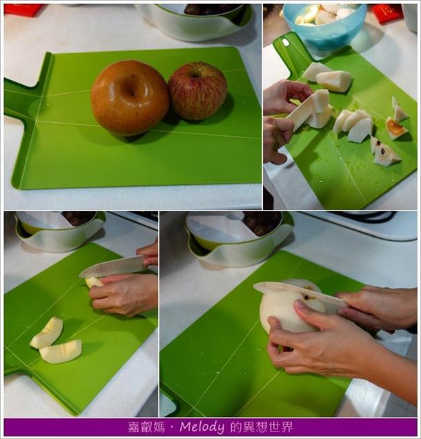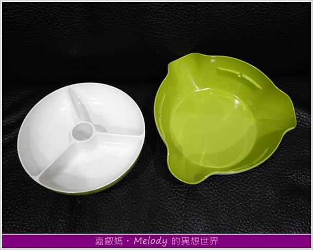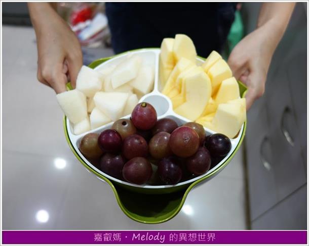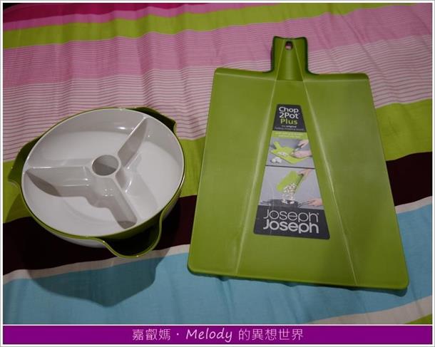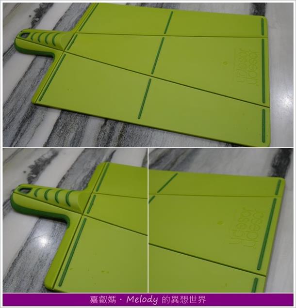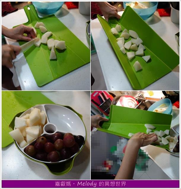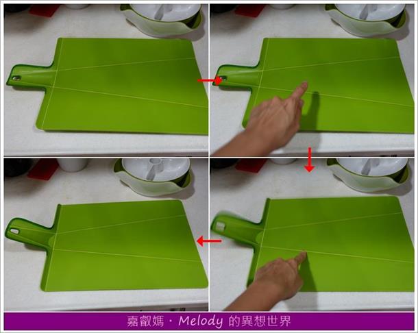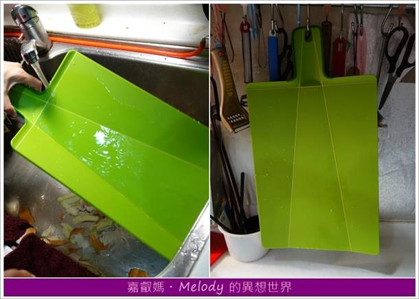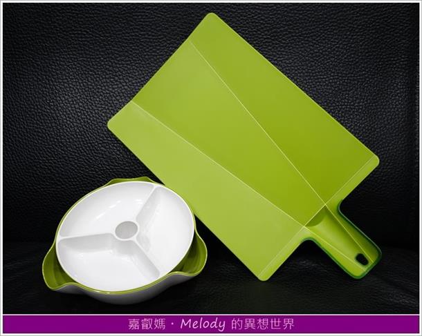 鮮少下廚的我,每每洗手作羹湯,總把自己搞得手忙腳亂,一會兒清洗食材、備料、開火烹煮,一會兒清潔刀具、器皿、收拾桌面,往往準備一餐就得花費不少時間,心想有沒有一種使用方便的廚房小物,讓料理過程更輕鬆,於是我到HOLA網站選購一些廚房用品 - 「Joseph Joseph 輕鬆放砧板」以及「Joseph Joseph 好方便雙層點心碗」,期許這些小幫手能讓料理過程更加順遂,減少待在廚房汗流浹背的時間,讓我多點時間陪陪家人。話說,家中有不少居家佈置用品都選購於HOLA,原因無他,深耕於台灣居家用品市場的HOLA,擁有多款獨家時尚、經典款式,讓我輕鬆擁有好質感的自有商品,更帶給我居家生活美學的創意與靈感,而Joseph Joseph創意時尚廚用品就是其中之一。這個品牌來自英國的雙胞胎兄弟,2003年一同創立了Joseph Joseph,結合彼此藝術與商業領域的長才,創造出以廚房用具和餐桌用品為主軸的全新設計品牌,Joseph Joseph讓廚具不再只是日常用品,而是融入生活兼具實用與創意的典藏品,除了連續多年榮獲多項國際設計大獎,目前更是全球暢銷的熱門品牌。「Joseph Joseph 輕鬆放砧板」尺寸:48 x 27 x 1.5 cm材質:聚丙烯、TPR熱塑性橡膠產地:china選購前,曾瀏覽過Joseph Joseph官網,發現此件商品有多款顏色可供選擇,而HOLA則引進其中幾款熱銷的顏色,像是紅、粉、藍、綠、紫等繽紛色彩外,還有大、小兩款SIZE可供挑選。攤平時可作為砧板使用。只需一指神功就能輕鬆攤平並固定。一旁觀看我操作的Jerry和Janet,先後興致勃勃地靠近我,直喊著我也要玩~我也要玩~我想兩姊弟壓根兒把它當作玩具一般把玩,還說這好像是翹翹板。呵呵~我的愛將居然被當作遊戲器材,只能說小孩的創意真是天馬行空啊!做為砧板使用,不外乎在上方切切食材和水果,此時固定止滑就顯得格外重要。「Joseph Joseph 輕鬆放砧板」的背面與手把皆附有止滑膠條,屏除一般塑膠砧板容易滑動的困擾,讓我使用更順手。以往為了讓食材入鍋或者將水果裝盤,多以刀面充當承接物,一來危險,二則得多次重覆此舉動。如今切好食材或水果後,只需拿起把手處,就能讓砧板頓時變成畚箕形狀,讓上方的食材輕鬆傾倒入鍋中,或者將切好的水果倒入盤中,真是一物多用的廚房用品。http://melody0702.pixnet.net/album/video/197423079-08.wmv光看照片可能無法體會,特此來段「Joseph Joseph 輕鬆放砧板」的變形影片供大家參考。秉持著研究精神,反覆找尋較為方便的取用方式,其中我認為左下方的拿取方式最為省力,想必是多個支點可取握的緣故吧!除了方便使用外,特殊塑料材質設計容易清洗,手把處則有洞孔設計,家中倘若沒有砧板架,懸掛也不成問題。「Joseph Joseph 好方便雙層點心碗」尺寸:22.7 x 22.7 x 7.5 cm材質:美耐皿產地:china此款在Joseph Joseph官網上,有兩色可選擇,而HOLA則引進色彩較為繽紛的綠白色系,恰好和我選用的砧板顏色雷同,非常符合我偏愛同色系的居家佈置方式。雙層點心碗分為上下兩層,上下兩層的連接處各有三個凹、凸槽,可固定上層不易滑動。點心碗上層的分格可分類擺放點心、水果等食物,中央圓孔可放置牙籤,分類清楚不雜亂,視覺上就是一大饗宴。以往盛裝水果多用照片右方的水果盤,多種水果放置在同一盤內,有時會相互影響其味道口感,倘若遇上多汁的水果,還得另外裝盤,就怕互相沾染,影響了美觀。如今改用雙層點心碗,不僅可同時享用適量以及多款水果外,也不再需要東一盤、西一盤的準備。瞧瞧兩姊弟一會兒吃著水梨、一會兒又咬著蘋果,表情多享受啊!我想「天天5蔬果」可不是當作口號喊喊而已喔!順著側邊波浪凹槽下層則可丟棄果殼、點心紙屑、牙籤等物,隨時保持桌面清潔。此外,下層凹槽處也能充當取拿點心碗的使力點,真的非常方便。方便使用之餘,清洗也很容易喔!多次榮獲國際設計大獎的Joseph Joseph,將無數巧思與創意元素加入原本平凡的廚具用品中,讓我的餐廚生活增添不少新色彩,也讓料理過程更加順暢,如此高CP值的廚房用品在此也推薦給有需要的朋友們,「工欲善其事,必先利其器」,這句話果然一點也不假,趁著HOLA不時舉辦的特惠活動,像是目前七月底前的夏日購物季,不僅推出多款特惠商品,還有新會員禮以及滿額折價券可領。此外,HOLA也推出APP唷!不僅可隨時掌握HOLA最新資訊,結合行動網路商店,24小時滿足購物慾望,還能線上查詢消費點數喔!倘若看了我的商品以及活動介紹後,對於HOLA、特力屋的商品有興趣選購的話,可於完成訂購的頁面,填上我的推薦代碼:melody0702,給我些許鼓勵喔!謝謝~HOLA:http://www.hola.com.tw特力屋:http://www.i-house.com.twJoseph Joseph 輕鬆放砧板(大)(綠色):http://www.hola.com.tw/product/detail/id/409412Joseph Joseph 好方便雙層點心碗(綠白色):http://www.hola.com.tw/product/detail/id/409406