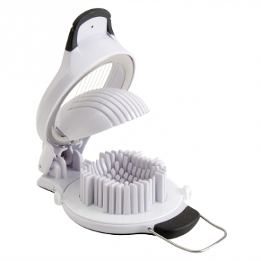 輕易的將硬熟雞蛋切片/切塊 按壓一次,即有完美的圓形或橢圓形切片 旋轉並再次按壓,即成塊狀,可供生菜沙拉使用 可上鎖以利收納儲存