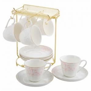 約三五好友喝茶,聊聊生活上的瑣事 生活就是要過的如此愜意~ ; 花色精美 精緻骨瓷材質 輕盈剔透,展現精巧工藝 6杯6盤組,最適合與朋友一同享用 讓享受美食的心情更愉悅 附金架,方便又實用不佔空間