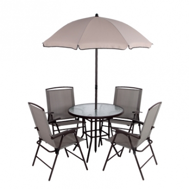 一桌四椅含傘六件組 水波紋強化玻璃桌面 椅子可折合方便收納 一次購足1桌/1傘/4椅