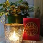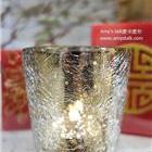 手工玻璃製燭杯 金色搭配冰裂紋設計 風格華麗 可透過燭光散發圖騰光印 可放置許願燭或茶蠟