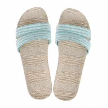 亞麻涼爽拖鞋 天然亞麻材質中底,清爽透氣 EVA鞋底,防滑安心 鞋型穿著舒適 繽紛條紋鞋面,散發時尚風情